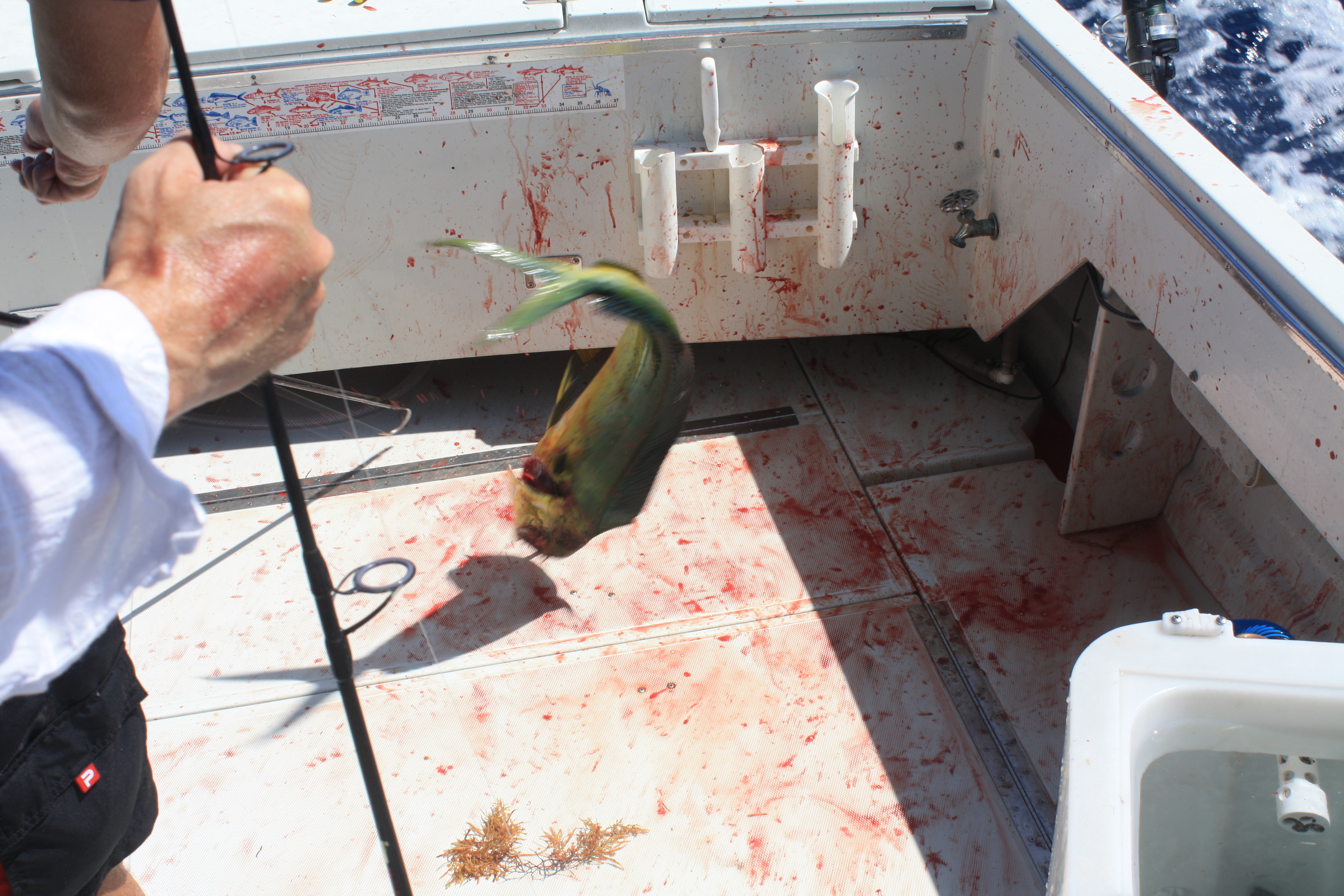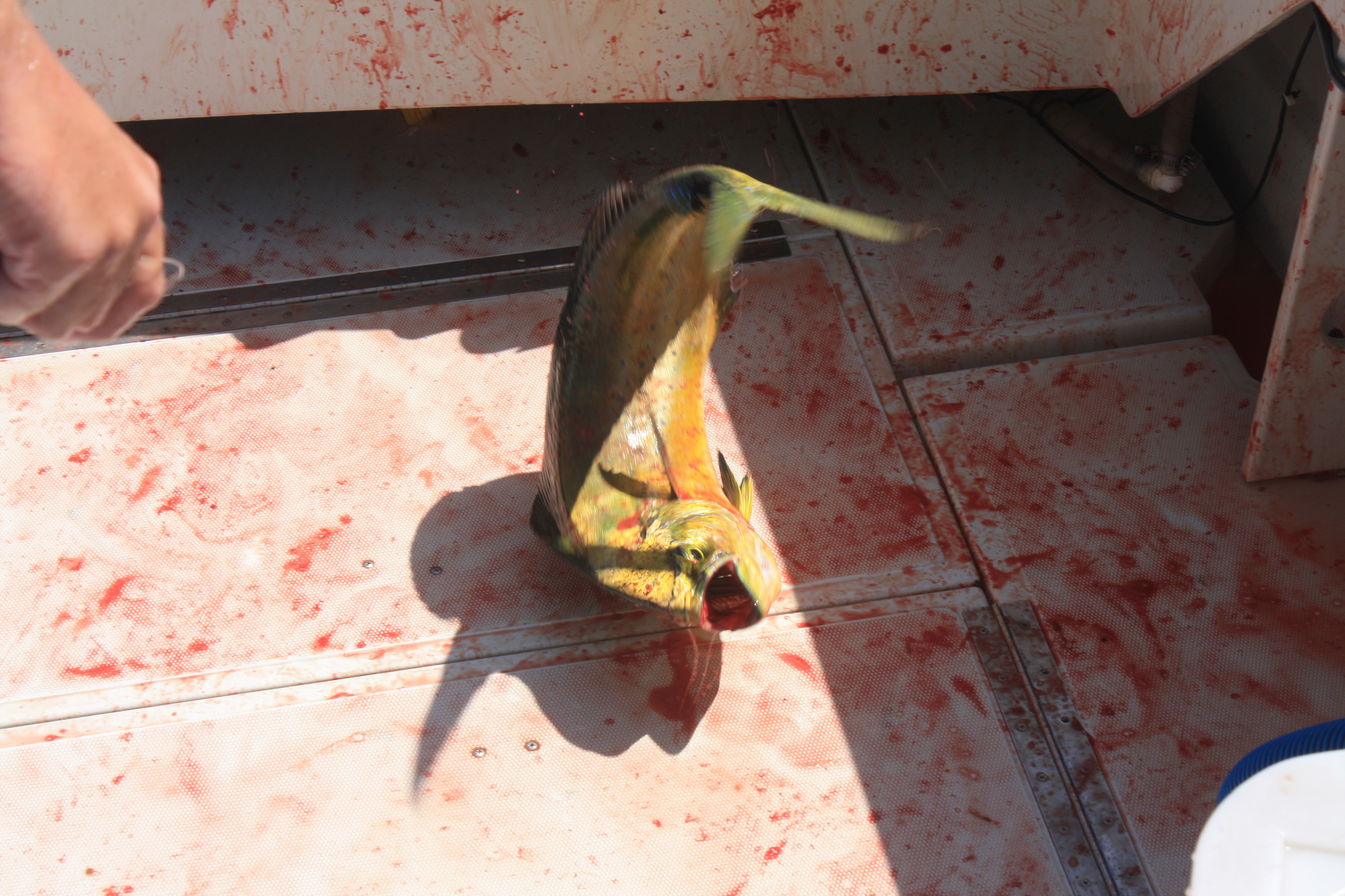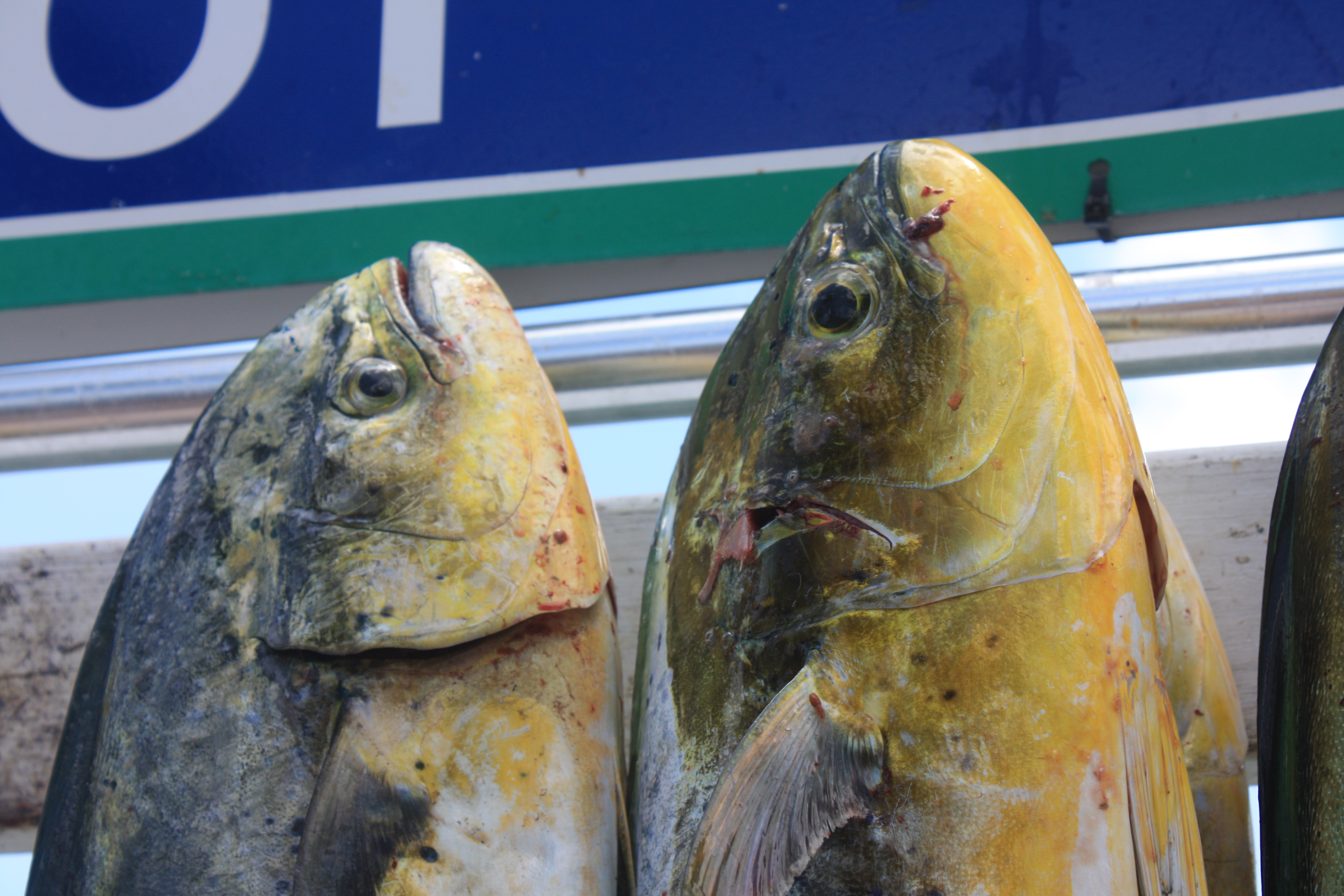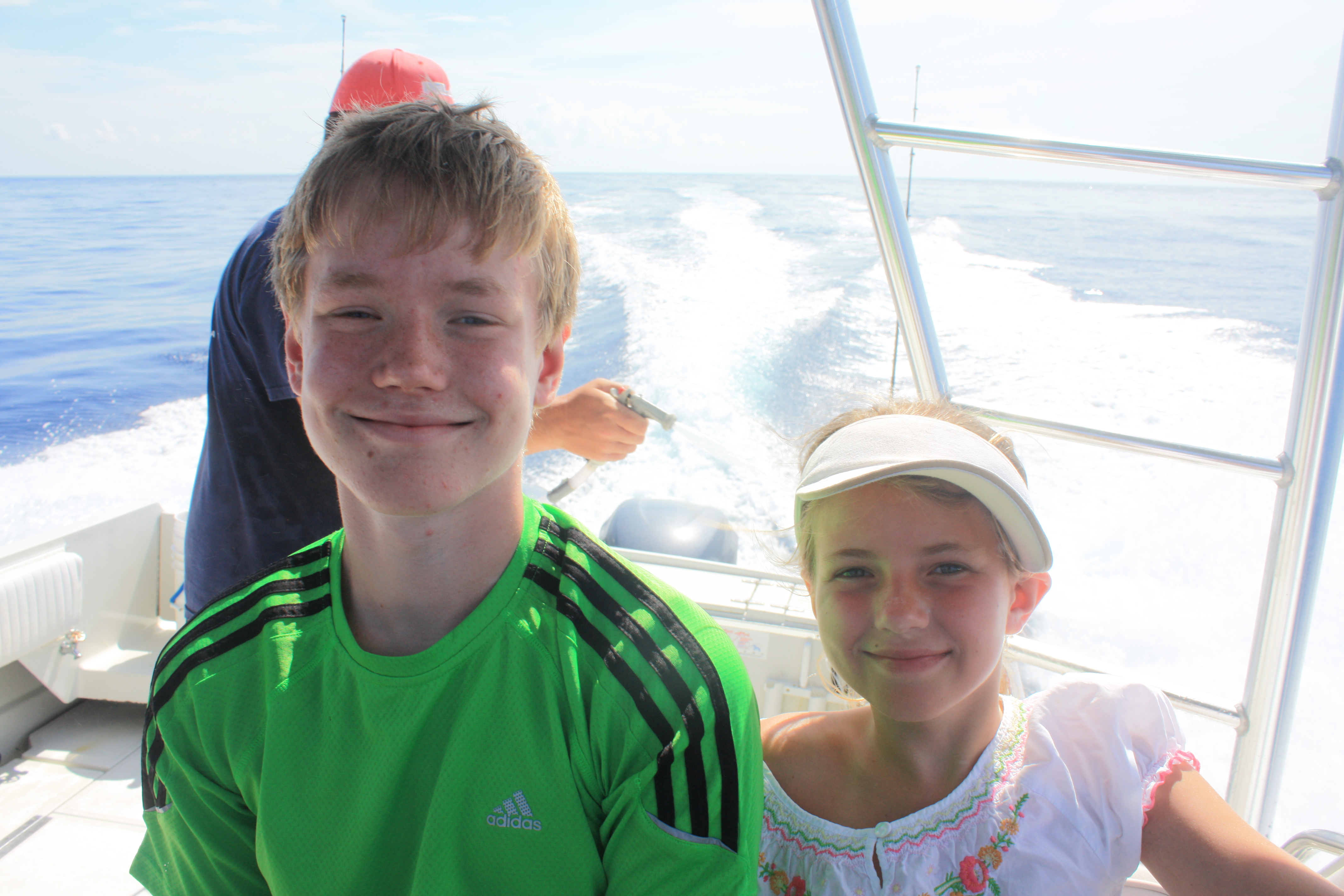 Og så hadde vi et stort ønske til…å dra på fisketur. Vi hadde nok våte drømmer om “Blue Marlin” og “Swordfish”. I juli krever dette imidlertid lange båtturer, gjerne på natten, og det passet nok ikke helt for alle i familien. Vi kom derfor til, noe som viste seg å være, et utmerket kompromiss. 4 timers Dolphin Fishing. Og “Dolphin” har ikke noe som helst med delfiner å gjøre – dette er rett og slett en helt fantastisk tropsik fisk. En “pelagic” art, dvs en fisk som lever og jakter rett under havoverflaten. Den har mange navn, Dolpinfish i Florida, Mahi-Mahi (betyr “veldig sterk”) på Hawaii, Dorado (betyr gylden) på spansk.