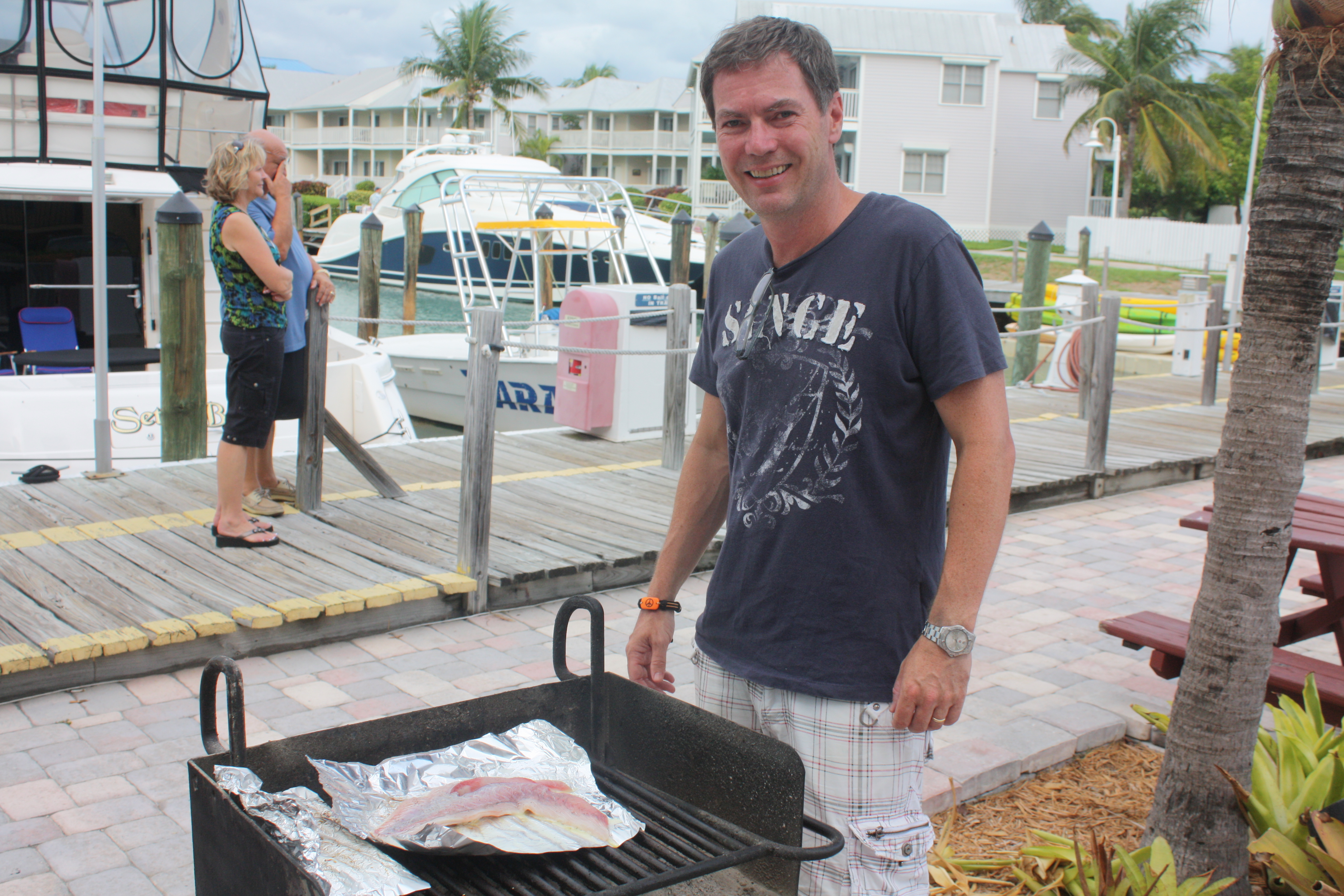 Den samme ettermiddagen fyrte vi opp grillen på resortens uteområdet. Kjøpte inn det den lille hotellbutikken hadde av, mer eller mindre, spennede tilbehør, plastservice og plastglass…….enkelt, men åååå for ett måltid:-)