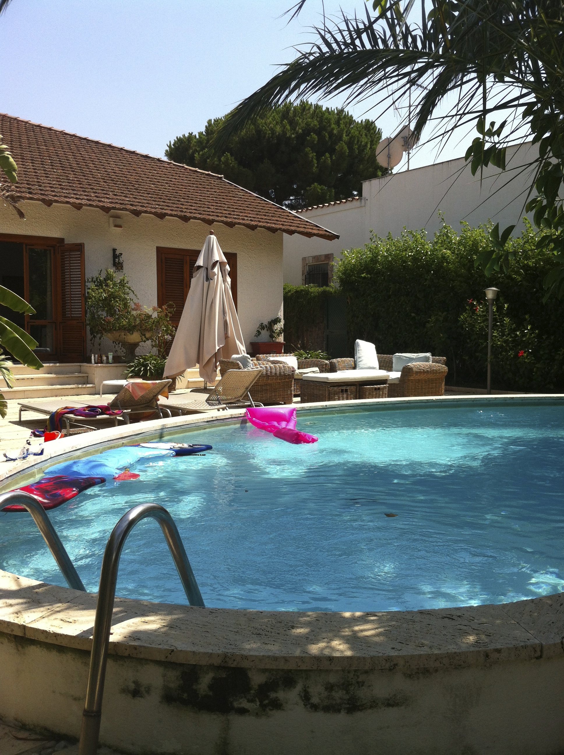Dag to bar turen videre til Mondello og villaen vi hadde leid. Denne taxituren ble pretty much en kopi av gårsdagens – denne gangen krasjet vi til og med, men bortsett fra en bulk i forskjermen gikk det bra. Villaen vi hadde leid var denne .