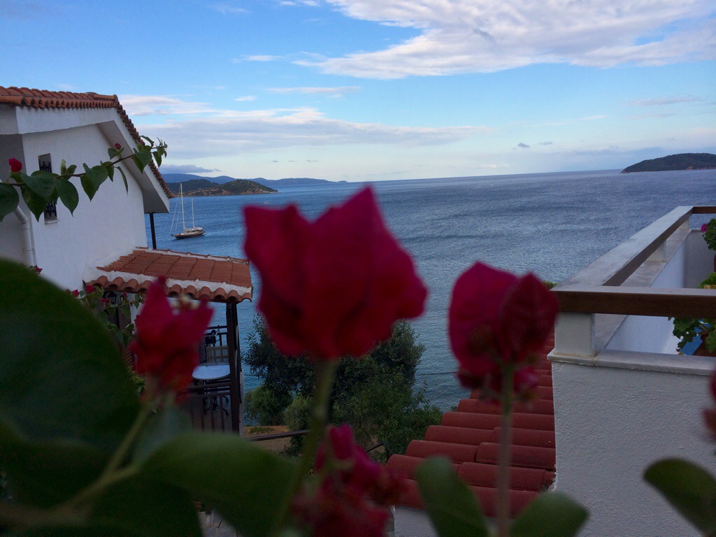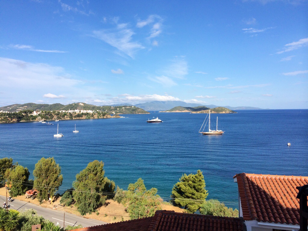 Det ble en lang reise til Skiathos. Bokstavelig talt, “mot alle solmerker, regnet det i bøtter og spann på Skiathos. Da rullebanen er kort fikk vi ikke lov til å lande på våt bakke. Det medførte at vi måtte lande i Athen og vente til regnet ga seg. Selvfølgelig ingen ønskesituasjon, men stor takk til Ving og Thomas Cook airlines for god informasjon underveis!